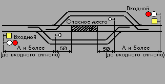 - требующие остановки при опасности для движения, возникшей на переездах, крупных искусственных сооружениях и обвальных местах, а также при ограждении составов для осмотра и ремонта вагонов на станционных путях;
