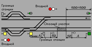 - разрешающие или запрещающие поезду проследовать из одного района станции в другой;