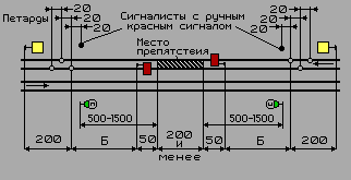Ограждение мест препятствий для движения поездов и мест производства на перегонах